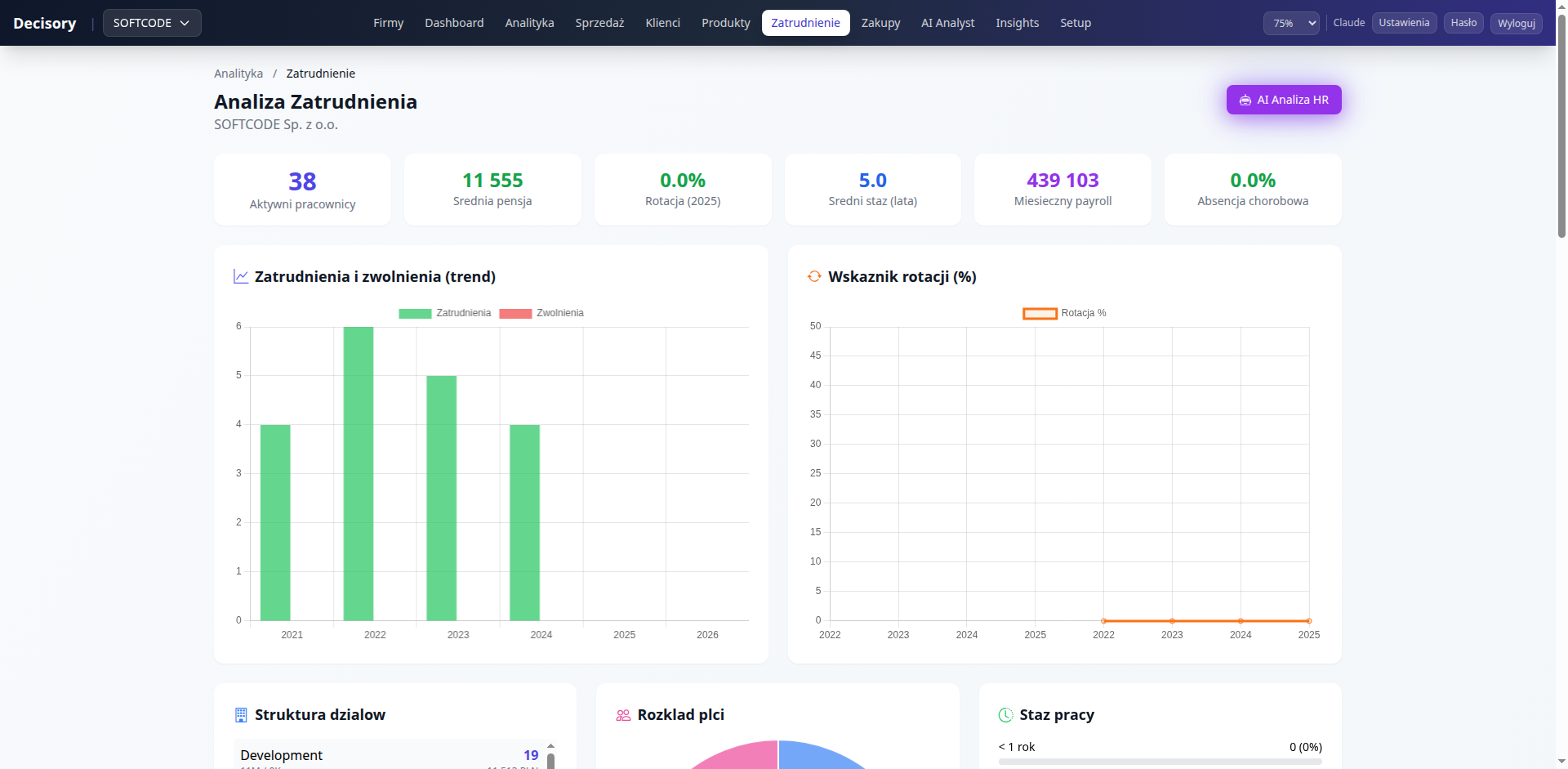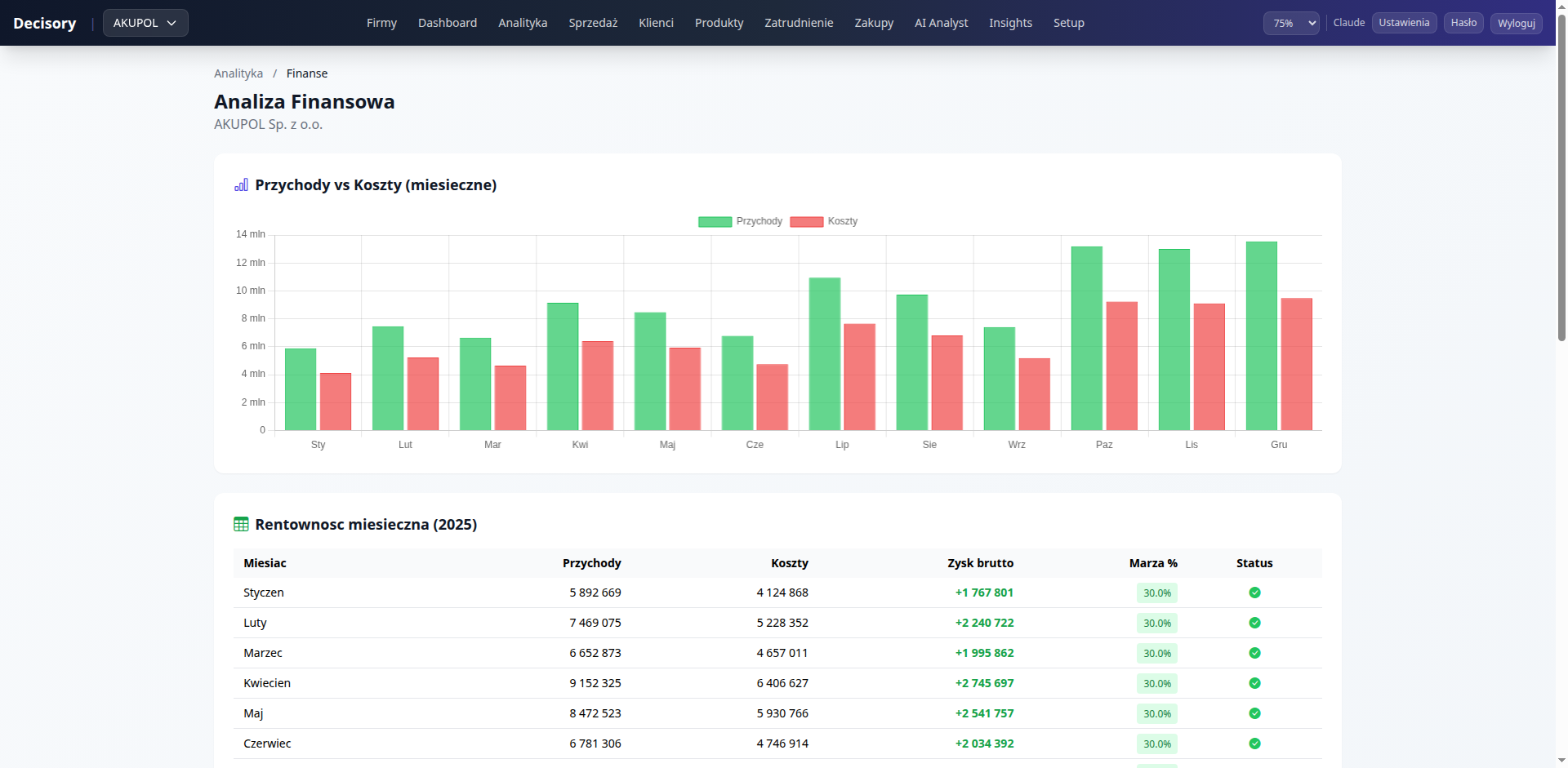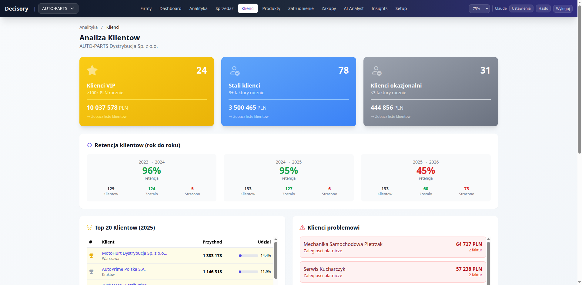 Kompleksowa platforma business intelligence z AI. Automatyczna segmentacja klientów, wykrywanie anomalii, prognozy sprzedaży i chatbot analityczny działający na danych firmy.